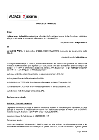 Proposition d’attribution d’aides départementales aux clubs « passerelles » contribuant au rayonnement des territoires et aux manifestations sportives. Proposition d'approbation des termes du projet modifié de la convention financière à conclure entre le Département du Bas-Rhin et la SAS SIG ARENA