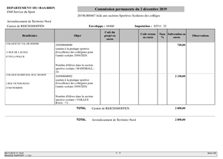 Proposition d'attribution d'aide à l'engagement sportif des clubs handisport et de sport adapté en Championnat de France, d'aide à l'acquisition de matériel sportif pour l'enseignement de l'EPS, d'aide aux déplacements dans le cadre de compétitions sportives scolaires, d'aide aux sections sportives scolaires, d'aide aux centres équestres pour la pratique de l’équithérapie