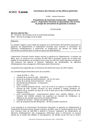 Le présent rapport a pour objet de proposer à la Commission Permanente d’accorder la garantie du Département à l’association Emmaüs pour financer la rénovation du bâtiment d’hébergement à Scherwiller et d’approuver les termes du projet de convention à conclure pour la mise en œuvre de cette décision.