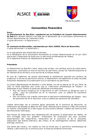 Convention financière_fonds patrimoine emblématique commune de Bouxwiller.._ -