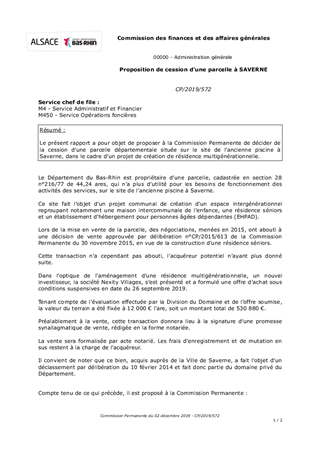 Le présent rapport a pour objet de proposer à la Commission Permanente de décider de la cession d’une parcelle départementale située sur le site de l’ancienne piscine à Saverne, dans le cadre d’un projet de création de résidence multigénérationnelle.