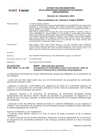 Par délibération de la Commission Permanente du 3 juillet 2017, le Département a adopté la convention cadre de groupement de commandes dit permanent, sur le fondement des articles 28 et le 101 de l’ordonnance n °2015- 899 du 23 juillet 2015 relative aux marchés publics désormais codifiés dans le code de la commande publique en vigueur depuis le 1er avril 2019. Ce groupe de commandes ouvert et permanent est en place depuis 2017. Il est proposé d'approuver le bilan des achats effectués dans le cadre de ce groupement. L'annexe présente les membres nouveaux ainsi que les nouvelles familles d'achat.