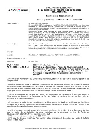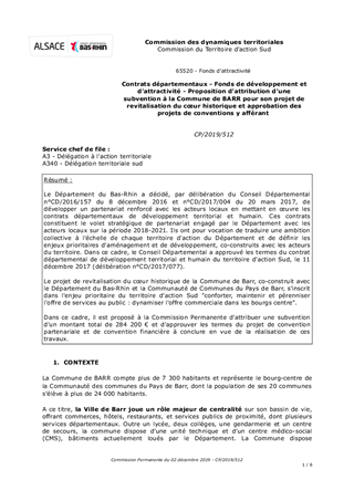 Contrats départementaux - Fonds de développement et d'attractivité - Proposition d'attribution d'une subvention à la Commune de BARR pour son projet de revitalisation du cœur historique et approbation des projets de conventions y afférant