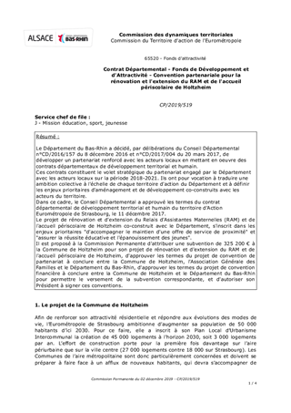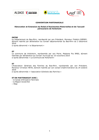 Contrat Départemental - Fonds de Développement et d'Attractivité - Convention partenariale pour la rénovation et l'extension du RAM et de l'accueil périscolaire de Holtzheim