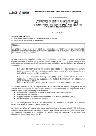 Le présent rapport a pour objet de soumettre à l'approbation de l'Assemblée départementale les créations, diminutions, abondements et clôtures d'autorisations de programme et d'engagement.