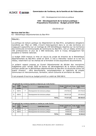 635 - Développement de la lecture publique - Propositions financières - Budget primitif 2020