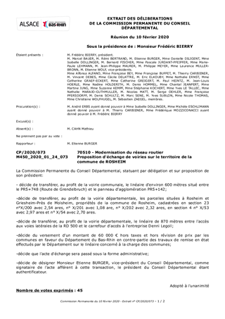 Le présent rapport a pour objet de proposer à la Commission Permanente de décider d'un échange de voiries sur le territoire de la commune de ROSHEIM entre le Département du Bas-Rhin et la commune.