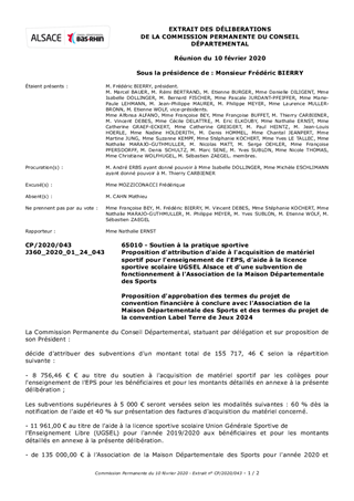 Proposition d'attribution d'aide à l'acquisition de matériel sportif pour l'enseignement de l'EPS, d'aide à la licence sportive scolaire UGSEL Alsace et d'une subvention de fonctionnement à l'Association de la Maison Départementale des Sports Proposition d'approbation des termes du projet de convention financière à conclure avec l'Association de la Maison Départementale des Sports et des termes du projet de la convention Label Terre de Jeux 2024