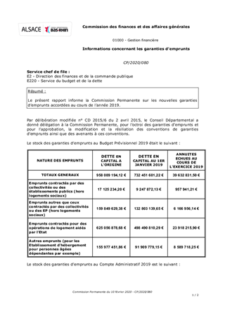 Le présent rapport informe la Commission Permanente sur les nouvelles garanties d’emprunts accordées au cours de l’année 2019.
