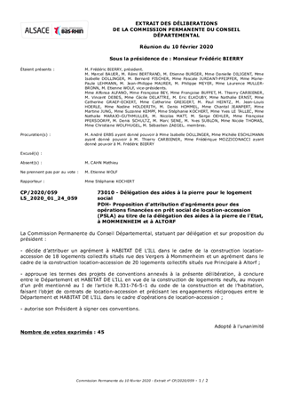 PDH- Proposition d’attribution d’agréments pour des opérations financées en prêt social de location-accession (PSLA) au titre de la délégation des aides à la pierre de l’Etat, à MOMMENHEIM et à ALTORF