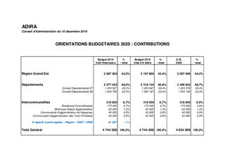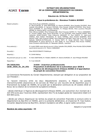 Le présent rapport propose à la Commission Permanente du Conseil Départemental d'attribuer à l'Agence de développement d'Alsace ADIRA une subvention d'un montant de 1 223 376 euros au titre de l'exercice 2020.
