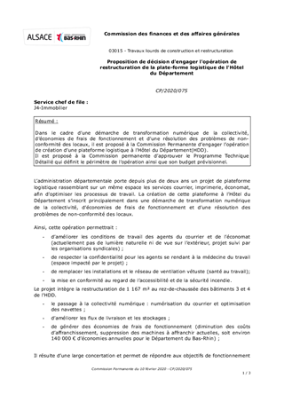 Proposition de décision d'engager l'opération de restructuration de la plate-forme logistique de l'Hôtel du Département