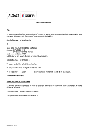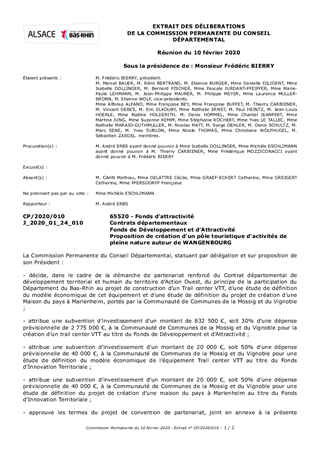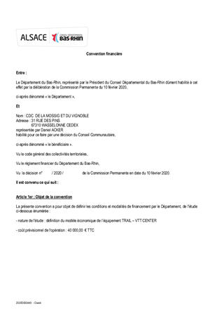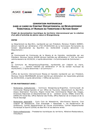 Le Département du Bas-Rhin, a décidé, par délibération du Conseil Départemental n°CD/2016/158 du 8 décembre 2016 et CD/2017/004 du 20 mars 2017, de renforcer son partenariat avec les acteurs locaux en mettant en œuvre des contrats départementaux de développement territorial et humain. Ces contrats constituent le volet stratégique du partenariat engagé par le Département avec les acteurs locaux sur la période 2018-2021. Ils ont vocation à traduire une ambition collective à l’échelle de chaque territoire d’action du Département et à définir les enjeux prioritaires d’aménagement et de développement co-construits avec les acteurs des territoires. Dans ce cadre, le Conseil départemental a approuvé le contrat départemental de développement territorial et humain du territoire d’Action de l’Ouest, le 11 décembre 2017 (délibération n°CD/2017/077). Le projet de dynamisation touristique du territoire intercommunal par la création d’un pôle d’activités de pleine nature à Wangenbourg, porté par la Communauté de Communes de la Mossig et du Vignoble, co-construit avec le Département, la commune de Wangenbourg, l’Office de Tourisme Intercommunal de la Mossig et du Vignoble et de nombreuses associations locales du territoire, s’inscrit dans les enjeux prioritaires du Territoire Ouest. Le présent rapport propose à la Commission Permanente d’attribuer à la Communauté de Communes de la Mossig et du Vignoble une subvention globale de 872 500 €, dont 832 500 € au titre du Fonds de Développement et d’Attractivité, pour le projet de création d’un Trail Center VTT, 20 000 € au titre du Fonds d’Innovation pour une étude de définition du modèle économique de ce Trail Center et 20 000 € au titre du Fonds d’Innovation pour une étude de définition du projet de Maison de Pays à Marlenheim. Il est également proposé à la Commission Permanente d’approuver les termes du projet de convention partenariale à conclure avec la Communauté de Communes de la Mossig et du Vignoble, de son Office de Tourisme Intercommunal et de la Commune de Wangenbourg ainsi que les conventions financières qui en découlent.