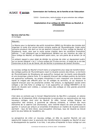 Implantation d’un collège de 600 élèves au Neuhof, à STRASBOURG