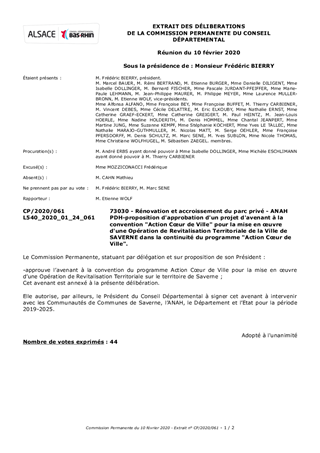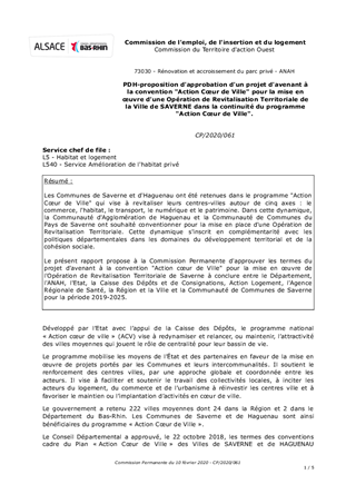 PDH-proposition d'approbation d'un projet d'avenant à la convention "Action Cœur de Ville" pour la mise en œuvre d'une Opération de Revitalisation Territoriale de la Ville de SAVERNE dans la continuité du programme "Action Cœur de Ville".