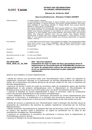 Proposition de mise en place de deux conventions entre le Département et l’Eurométropole de STRASBOURG portant sur un cadre de collaboration autour des données géographiques et sur un partenariat concernant le plan cadastral napoléonien.