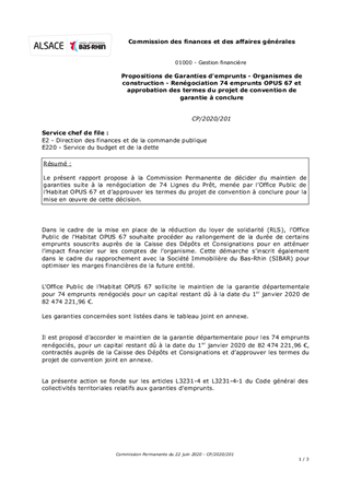 Le présent rapport propose à la Commission Permanente de décider du maintien de garanties suite à la renégociation de 74 Lignes du Prêt, menée par l’Office Public de l’Habitat OPUS 67 et d’approuver les termes du projet de convention à conclure pour la mise en œuvre de cette décision.