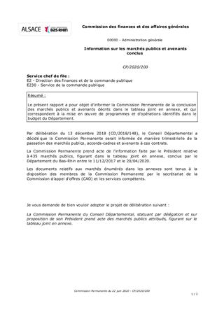 Le présent rapport a pour objet d’informer la Commission Permanente de la conclusion des marchés publics et avenants décrits dans le tableau joint en annexe, et qui correspondent à la mise en œuvre de programmes et d’opérations identifiés dans le budget du Département.