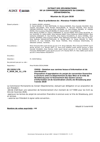 Proposition d'approbation du projet de convention financière à conclure entre le Département du Bas-Rhin et la Ville de Strasbourg pour le financement des Centre Locaux d'Information et de Coordination (CLIC) de Strasbourg pour l'année 2020