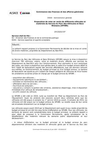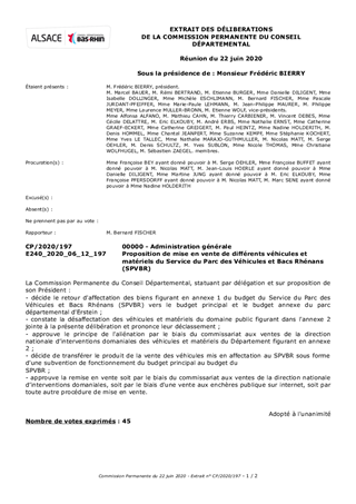 Le présent rapport propose à la Commission Permanente de décider de la mise en vente de divers matériels, propriétés du Département du Bas-Rhin.