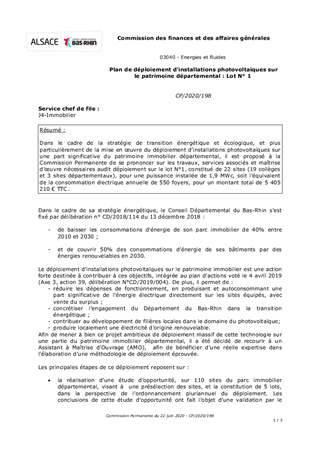 Plan de déploiement d'installations photovoltaïques sur le patrimoine départemental : Lot N° 1
