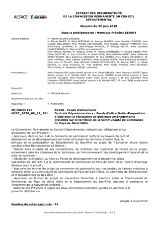 Contrats Départementaux - Fonds d'attractivité -Proposition d'aide pour la réalisation de plusieurs aménagements cyclables sur le territoire de la Communauté de Communes du Pays de Saint Odile