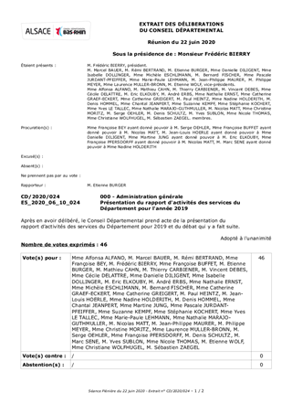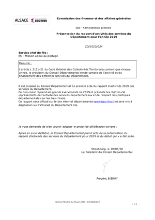 Présentation du rapport d'activités des services du Département pour l'année 2019
