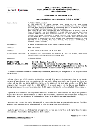 Le présent rapport a pour objet de proposer à la Commission Permanente : - d’autoriser l’Office Public de l’Habitat - OPUS 67 à vendre 1 logement situé à Wissembourg et de décider du maintien des garanties d’emprunts correspondantes ; - d’approuver les termes du projet d’avenant à la convention à conclure pour la mise en œuvre de cette décision.