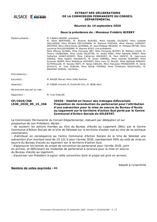 Proposition de reconduction du partenariat pour l'attribution d'une subvention pour la mise en oeuvre du Bureau d'Accès au Logement sur le territoire d'action Sud porté par le Centre Communal d'Action Sociale de SELESTAT.