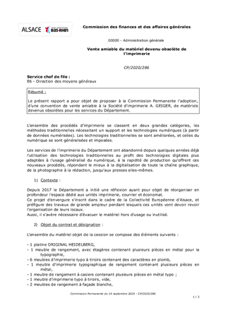 Le présent rapport a pour objet de proposer à la Commission Permanente l’adoption, d’une convention de vente amiable à la Société d’imprimerie A. GEIGER, de matériels devenus obsolètes pour les services du Département.