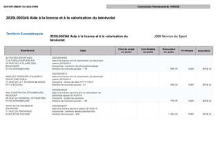 Proposition d'attribution d'aides à la licence scolaire, d'aides à l'acquisition de matériel sportif pour l'enseignement de l'EPS, d'aides à la licence et à la valorisation du bénévolat, d'aides à l'acquisition de matériel sportif aux associations accueillant des personnes en situation de handicap, d'aides à l'acquisition de matériel sportif pour les associations et d'aides à l'engagement sportif des clubs handisport et de sport adapté en Championnat de France.