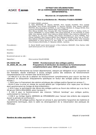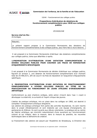 Propositions d'attribution de dotations de fonctionnement complémentaire pour 2020 aux collèges publics