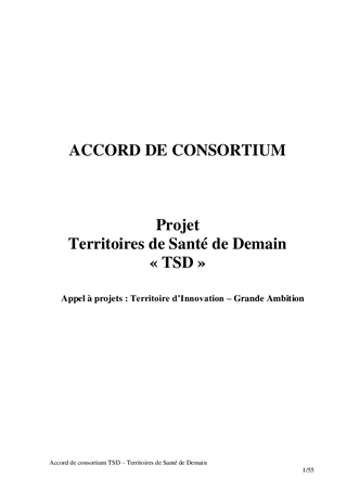 Accord de consortium pour la mise en œuvre du projet "Territoires de santé de demain"