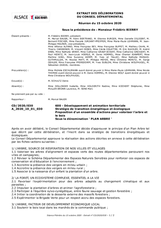 L’arbre est constitutif de nos paysages, de manière diffuse, il est porteur de services à la nature comme à l’Homme, il est notamment le support principal de biodiversité et régulateur du climat. Il est constaté que son existence est fragilisée en milieu urbain, ce dans ses formes ancestrales (cœurs d’îlots, vergers, ports de grande ampleur). Sa présence en forêt est également menacée par le changement climatique, les évolutions de l’usage des sols et les contraintes de gestion (normes, rationalisation des cultures, etc.). Si l’on constate une augmentation des surfaces arborées, avec pratiquement 200 000 hectares dans le Bas-Rhin et 17 millions d’hectares à l’échelle nationale en 2016, il n’en demeure pas moins des tensions sociétales et environnementales menaçant par là même ses effets bénéfiques pour les territoires et leurs habitants. Au cœur de la Lifevalley, espace transfrontalier pionnier de l’écologie et de la santé, le Département souhaite prendre des mesures fortes en faveur d’une politique de développement de l’arbre, en cohérence avec sa stratégie de transition énergétique et écologique. L’arbre est à la croisée de nombreux enjeux, qu’ils soient environnementaux, économiques, agricoles ou sanitaires et mobilise de nombreux acteurs du territoire. Il est ainsi proposé, par cette délibération, de créer un « Plan Arbre » autour de 3 orientations majeures : 1. L’arbre, source de respiration de nos villes et villages : agir pour favoriser la présence de l’arbre en milieu urbain comme rural ; 2. La forêt, un écosystème complexe, essentiel à la vie : accompagner les acteurs de la forêt pour faire face aux enjeux climatiques ; 3. L’arbre, facteur de développement économique local : valoriser les filières locales du bois et appuyer la plantation en forêt notamment par le Plan de Relance du Département.