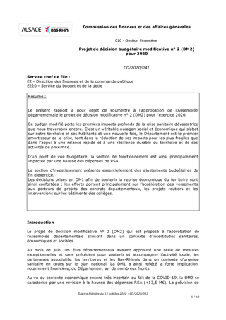 Projet de décision budgétaire modificative n° 2 (DM2) pour 2020