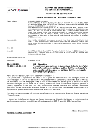 Proposition de poursuite de la dynamique de l'acte 1 du "plan de transformation des collèges publics de l'Eurométropole" : une nouvelle ambition pour les collèges de l'Eurométropole de STRASBOURG (Acte 2)