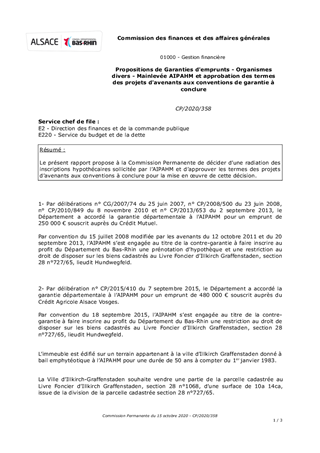 Le présent rapport propose à la Commission Permanente de décider d’une radiation des inscriptions hypothécaires sollicitée par l’AIPAHM et d’approuver les termes des projets d’avenants aux conventions à conclure pour la mise en œuvre de cette décision.