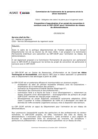 Dans le cadre de la politique départementale de l’habitat adoptée par le Conseil Départemental lors de sa réunion du 26 mars 2018, il est proposé à la Commission Permanente d’attribuer une subvention au CEP-CICAT pour l’animation du réseau de démonstrateurs. Il est également proposé à la Commission Permanente de poursuivre son partenariat avec le CEP-CICAT et d’approuver les termes du projet de convention de partenariat à conclure avec le CEP-CICAT.