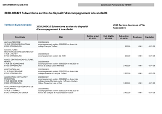 Proposition d'attribution de subventions au titre du dispositif d'accompagnement à la scolarité pour l'année scolaire 2020/2021 et durant l'été 2020