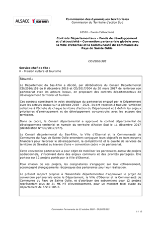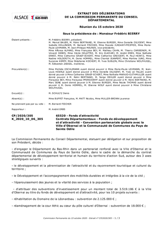 Contrats Départementaux - Fonds de développement et d'attractivité - Convention partenariale globale avec la Ville d'Obernai et la Communauté de Communes du Pays de Sainte Odile