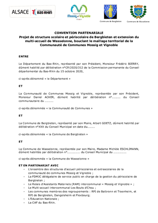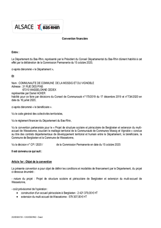 Contrats Départementaux - Fonds de développement et d'attractivité - Projet de structure scolaire et périscolaire de BERGBIETEN et extension du multi-accueil de WASSELONNE, bouclant le maillage territorial de la Communauté de Communes MOSSIG ET VIGNOBLE