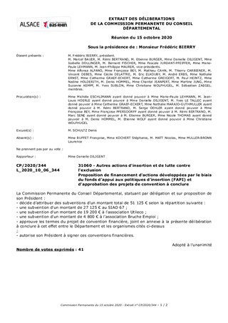 La loi de finances initiale pour 2017 a créé le Fonds d'Appui aux Politiques d'Insertion(FAPI) qui vise à apporter un soutien financier aux Départements qui s'engagent à renforcer leurs politiques d'insertion. Conformément à la délibération CP/2017/149 prise lors de la réunion de la Commission Permanente du 3 avril 2017,il est proposé à la Commission Permanente de financer les structures mettant en œuvre les actions qui seront développées d'octobre 2020 à septembre 2021.