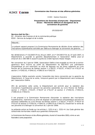 Le présent rapport propose à la Commission Permanente de décider d’une radiation des inscriptions hypothécaires sollicitée par Odélia et d’abroger la convention de garantie.