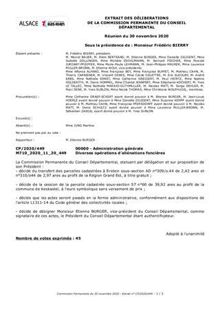 Le présent rapport propose à la Commission Permanente diverses opérations foncières nécessitant des transactions immobilières. Sont concernées les Communes d'Erstein et de Keskastel.