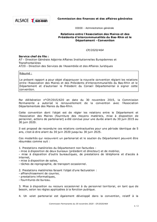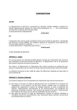 Relations entre l'Association des Maires et des Présidents d'intercommunalités du Bas-Rhin et le Département - Convention