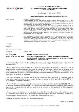 Contrats Départementaux - Fonds de Développement et d'Attractivité - Projet de restructuration de la ferme-auberge de la Perheux à Wildersbach