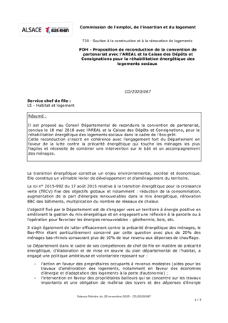Il est proposé au Conseil Départemental de reconduire la convention de partenariat, conclue le 18 mai 2018 avec l’AREAL et la Caisse des Dépôts et Consignations, pour la réhabilitation énergétique des logements sociaux dans le cadre de l’éco-prêt. Cette reconduction s'inscrit en cohérence avec l'engagement fort du Département en faveur de la lutte contre la précarité énergétique qui touche les ménages les plus fragiles et nécessite de combiner une intervention sur le bâti et un accompagnement des ménages.