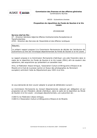 Le présent rapport propose à la Commission Permanente de décider de l’attribution de subventions au titre de l’enveloppe départementale du Fonds de Soutien à la Vie Locale.