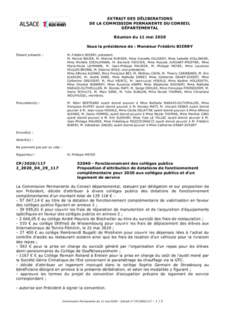 Proposition d'attribution de dotations de fonctionnement complémentaire pour 2020 aux collèges publics et d'un logement de service