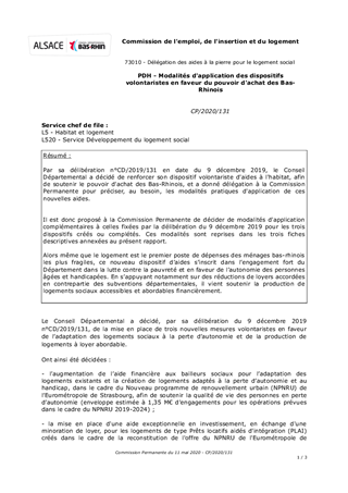 PDH - Modalités d'application des dispositifs volontaristes en faveur du pouvoir d'achat des Bas-Rhinois